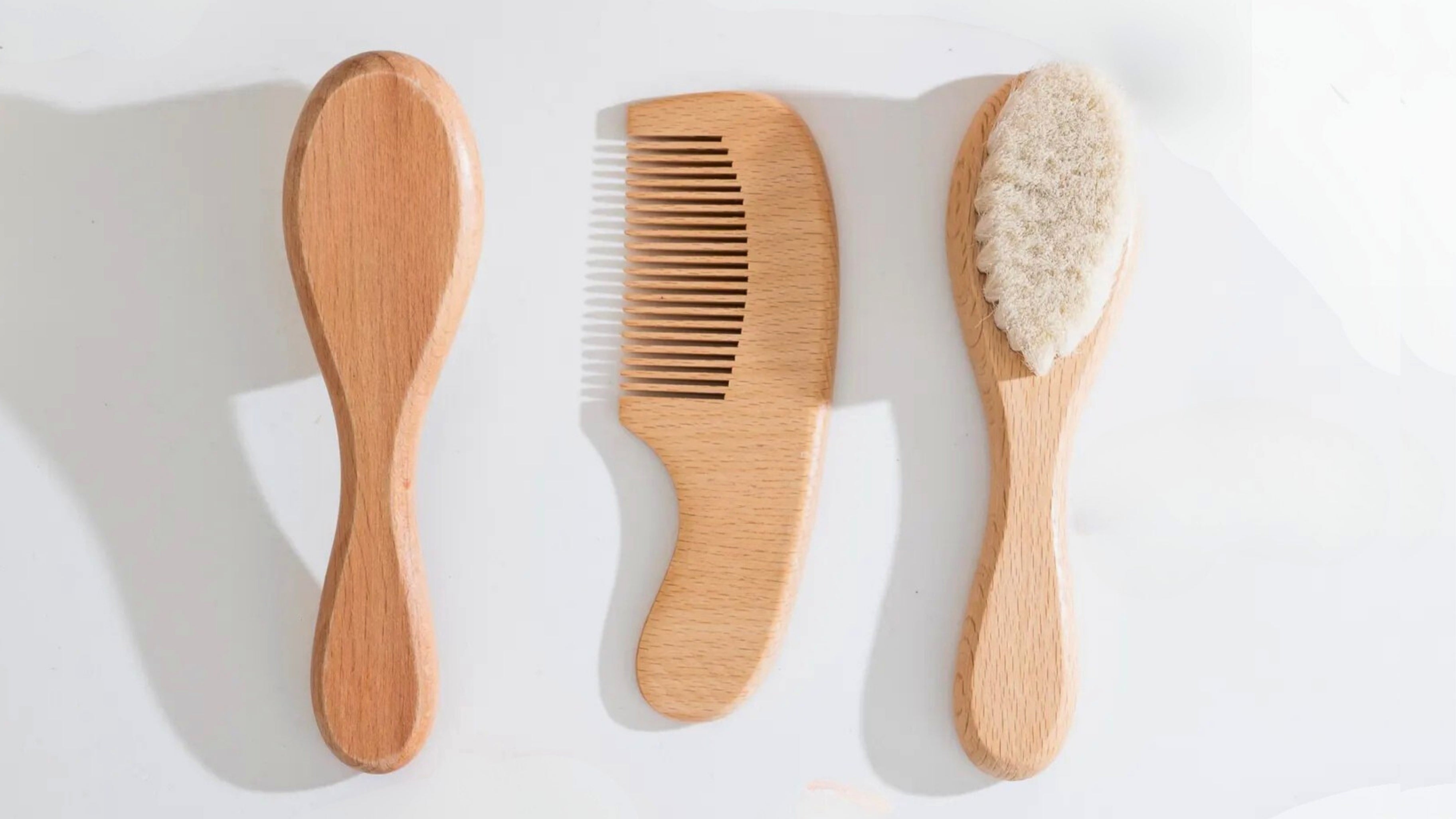 %100 Doğal Keçi Kılı Bebek Saç Fırçası Ahşap Tarak Ahşap Diş Kaşıyıcı Seti- Keseli 4'lü Set