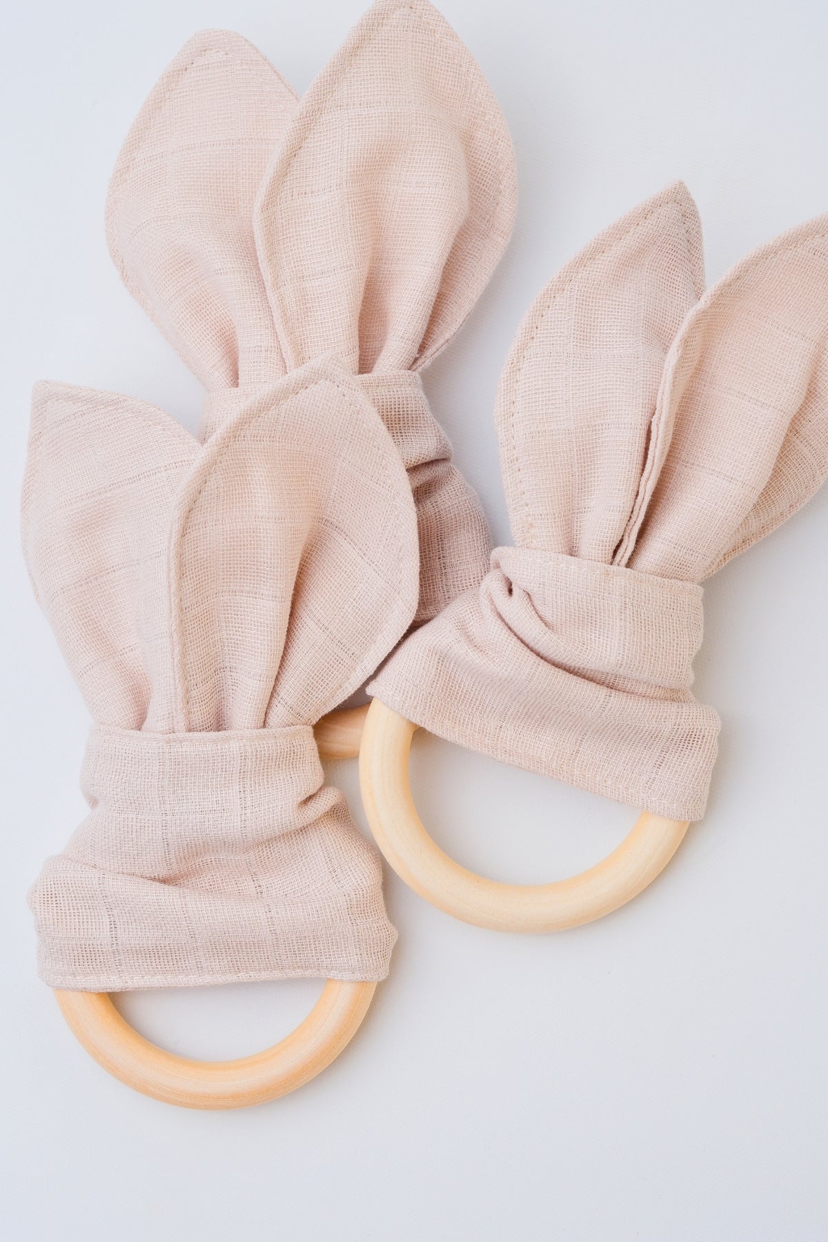 %100 Doğal Krem Ahşap Diş Kaşıyıcı Organik Bebek Diş Kaşıyıcı Müslin Diş Kaşıyıcı