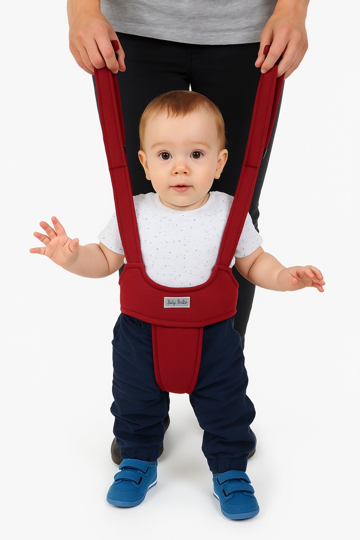 - Yürümeye destek kemer tasarımı, bel ve bacak arasından kavrayarak bebeği sarar; düşme riskini azaltır.